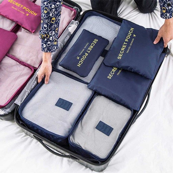 Este set con 6 organizadores de distintas medidas te permite guardar en tu valija tu ropa, zapatos, cosméticos de una manera ordenada y práctica.